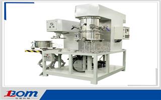 大型雙行星真空攪拌機是寶冕企業針對鋰電池漿料、各種膠黏劑以及新能源行業對于高粘度物料攪拌需要提高攪拌效率和均勻度等基礎上所研制的一種非標化程度高的強力混合攪拌工業級設備。由低速攪拌器、高速分散器、刮壁刮底和測溫探頭等組成,具有快速的混合、反應、分散、溶解,捏合作用,特別適用于固-液、液-液相的分散、混合;根據物料粘度的不同,設計不同的行星輪傳動比,扭矩變化區間大,是膠黏劑、硅膠、鋰電池漿料等行業首選攪拌混合產品;同時設備帶刮壁刮底功能,無死角,無殘留,清洗方便,配套獨特的控制系統,操作安全便捷;設備可另選配擠出裝置,實現攪拌、出料一體化作業。對于有溫度要求的物料,可配套合適的模溫機,獨立操作,溫度控制精度高。